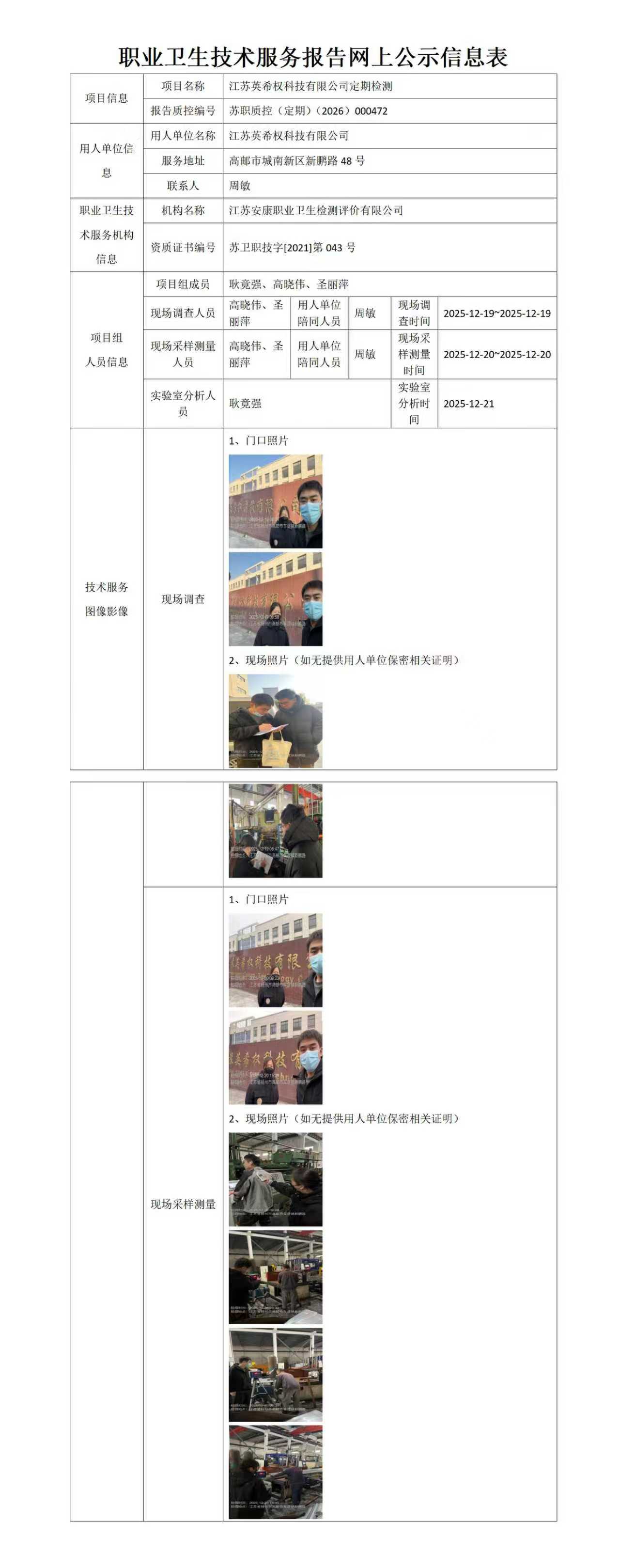热烈庆祝江苏安康职业卫生检测评价有限公司官网开通合作机构可以在线查询检测报告了!... ...