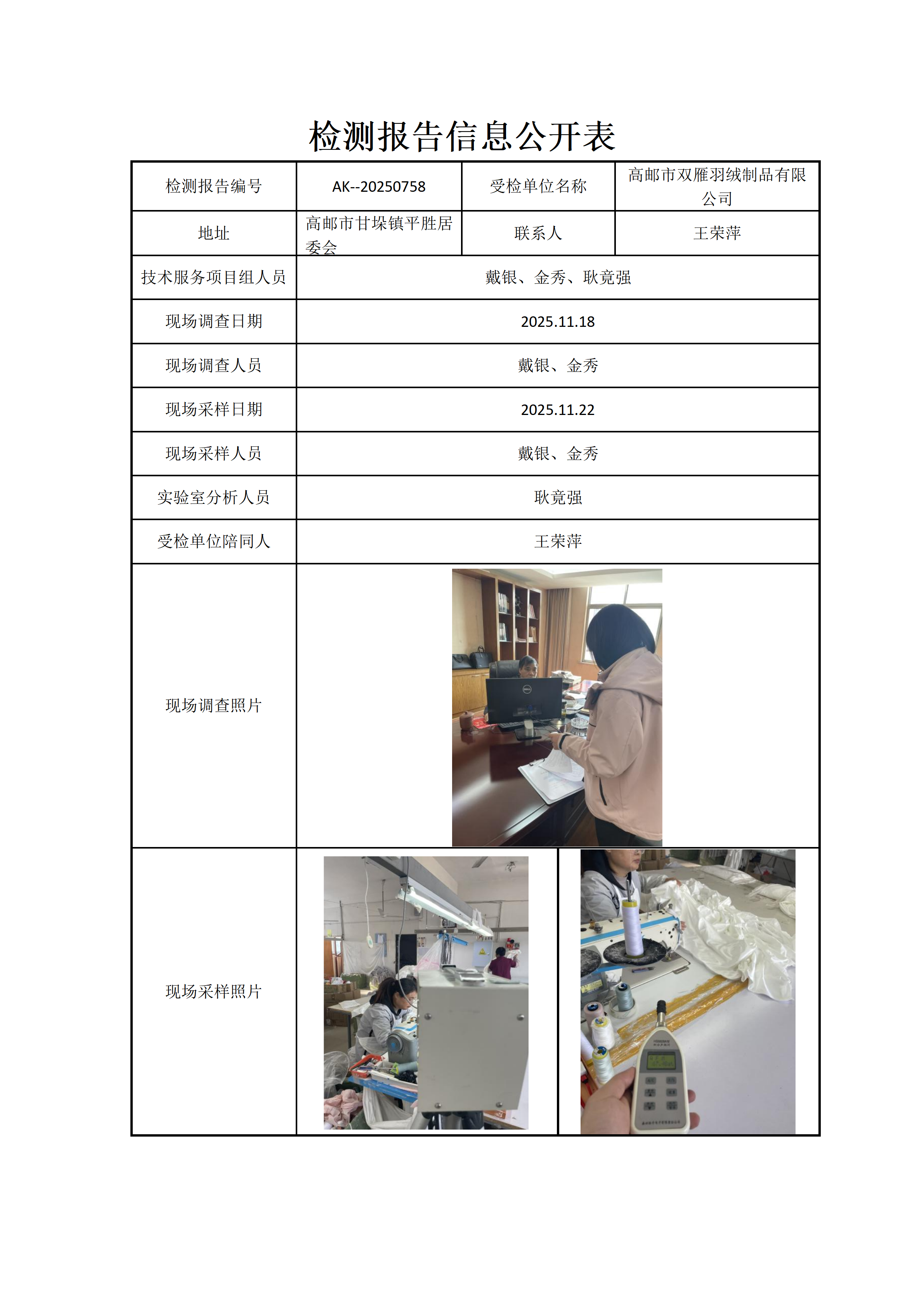 高邮市双雁羽绒制品有限公司